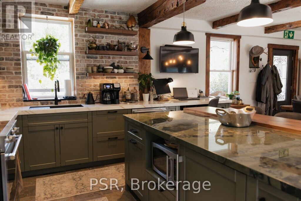 This beautiful,secluded 5+ bedroom farmhouse with attached garage,outdoor firepit,sauna,family room fireplace,huge party kitchen,bonus office/nursery/bedroom sitting on 20 serene acres is just a 6 minute drive from the Century Express lift and Woodview Mountain Top Skating located at the top of Blue Mountain. Fully turn-key with beautiful linens,games,books,firewood and everything you can think of for your personal retreat,this farmhouse has it all! The 5 well-appointed bedrooms,3 bathrooms,attached garage and even attached room to store all of your winter gear,give you loads of flexibility. Main floor bedroom has 1 Queen,Second floor has 2 Queen bedrooms,a bedroom with two twins as well as one primary King with it's own ensuite with soaker tub. In behind the primary is where you will find the extra bonus room. EV charger just beside the garage entrance allows for great versatility. Close to trails and your own personal 20 acres to cross-country ski,snowmobile or ATV on. Right beside the snowmobile trailway system,the Loree forest and your own personal ravine,this retreat won't disappoint. Rental period is from Dec 20-Mar 20 or Possibility to extend lease on either side for $8,000 per month. (id:52069) ID#: 2093365