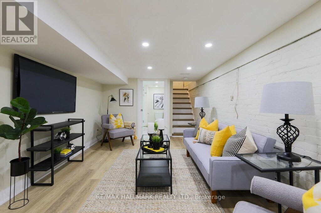 A stylish1 bedroom suite featuring vinyl flooring that seamlessly combines aesthetics and practicality. The modern kitchen is equipped with stainless steel appliances,elegant quartz countertops,and a convenient breakfast bar ideal for casual meals. The spacious bedroom features a generous double closet,offering ample storage space. Enjoy a beautifully designed three-piece bath,complete with an ensuite laundry for your convenience. This suite offers the unique advantage of two separate entrances,adding to its appeal. All utilities are included (heat,hydro,and water/waste),ensuring a hassle-free living experience. Additionally,1 parking space is included and located in the laneway. The basement suite includes a private outdoor space on the side,in addition to access to a shared backyard. The Landlord will be responsible for landscaping and snow removal. Within walking distance to Metro,TTC,LA Fitness,and schools. (id:52069) ID#: 1418428