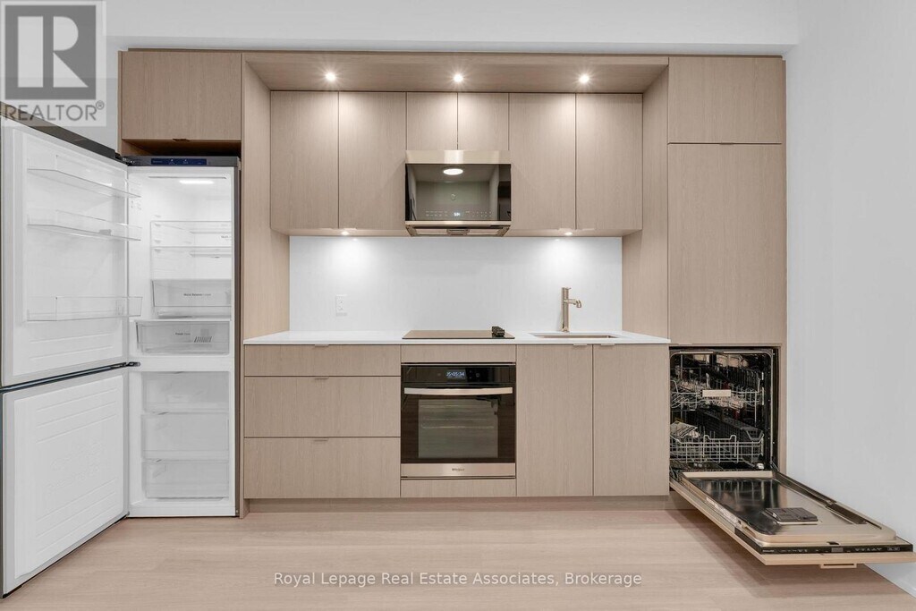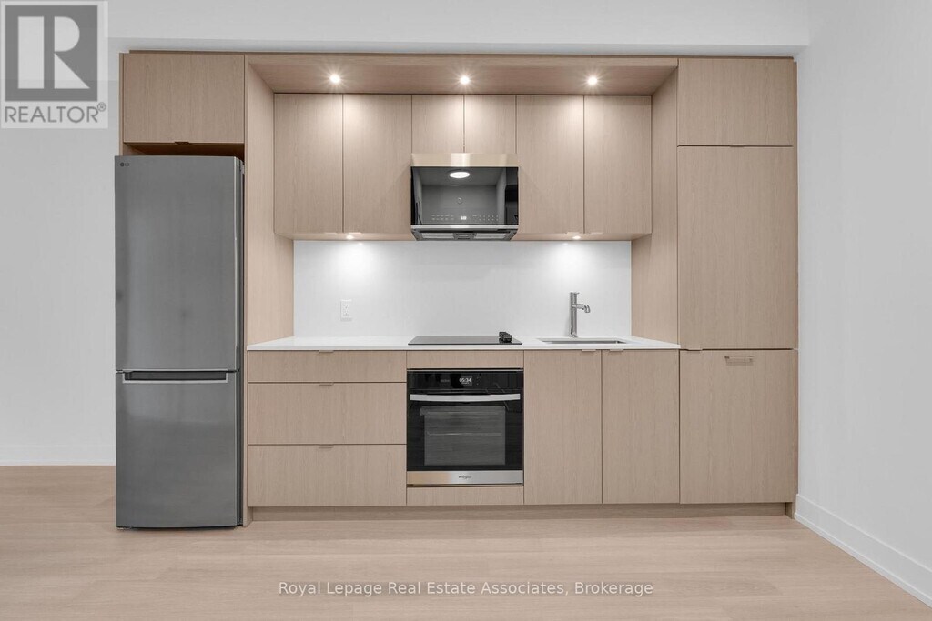 Bright and functional one-bedroom suite at The Westerly 2. This thoughtfully designed unit features a modern,open-concept layout with wide-plank light-toned flooring and floor-to-ceiling windows that fill the space with natural light. The kitchen is equipped with full-size stainless-steel appliances,sleek flat-panel cabinetry in a light wood finish,quartz countertops,and integrated lighting. The living and dining area offers a seamless walk-out to a spacious balcony overlooking the tree-lined streetscape. The bedroom includes a large window and walk-in closet with built-in shelving. A contemporary four-piece bathroom and in-suite laundry complete this well-appointed suite. Residents of The Westerly 2 enjoy access to a full range of amenities,including a fully equipped fitness centre,yoga studio,co-working lounge,party and entertainment room,outdoor terrace with BBQ and dining areas,24-hour concierge,and visitor parking. Located just steps from Islington Subway Station,shops and cafés along Bloor Street,and minutes to major highways and downtown Toronto. (id:52069) ID#: 1968379