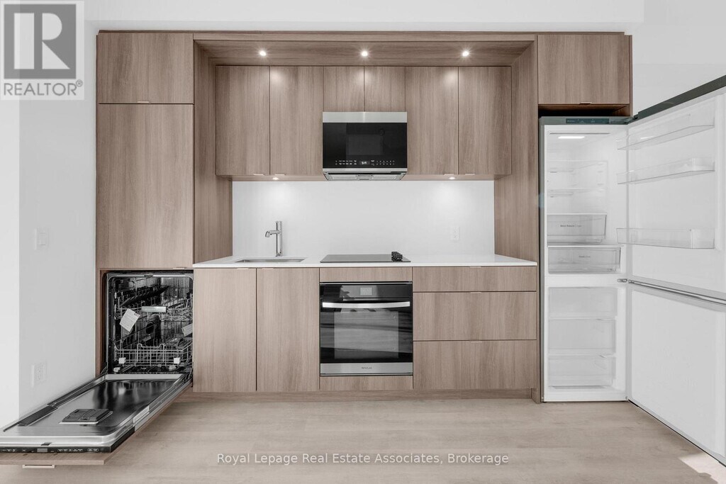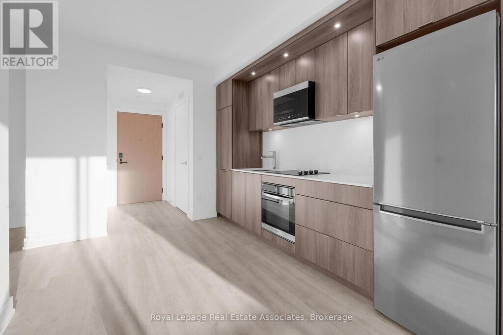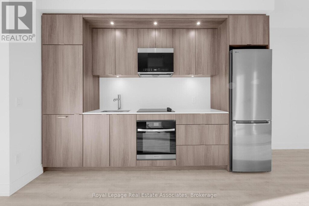 Beautiful and functional one-bedroom + den suite at The Westerly 2,showcasing light,modern finishes and a bright,open layout. The contemporary kitchen features full-size stainless-steel appliances,quartz countertops,and sleek wood-grain cabinetry with integrated lighting. The open-concept living and dining area offers a seamless flow for both relaxing and entertaining,extending to a private balcony with tranquil courtyard views. The spacious bedroom features floor-to-ceiling windows and a large closet,providing an abundance of natural light and storage. A separate den off the entryway offers the perfect space for a home office or reading nook,while the elegant four-piece bathroom and in-suite laundry complete this thoughtfully designed home. One parking space is included for added convenience. Residents of The Westerly 2 enjoy access to premium amenities,including a state-of-the-art fitness centre,yoga studio,co-working lounge,party and entertainment room,outdoor terrace with BBQ and dining areas,24-hour concierge,and visitor parking. Ideally located steps from Islington Subway Station,Bloor Street shops and cafés,and just minutes to Sherway Gardens,local parks,and major highways,The Westerly 2 offers the best of contemporary urban living with exceptional connectivity and convenience. (id:52069) ID#: 1968379