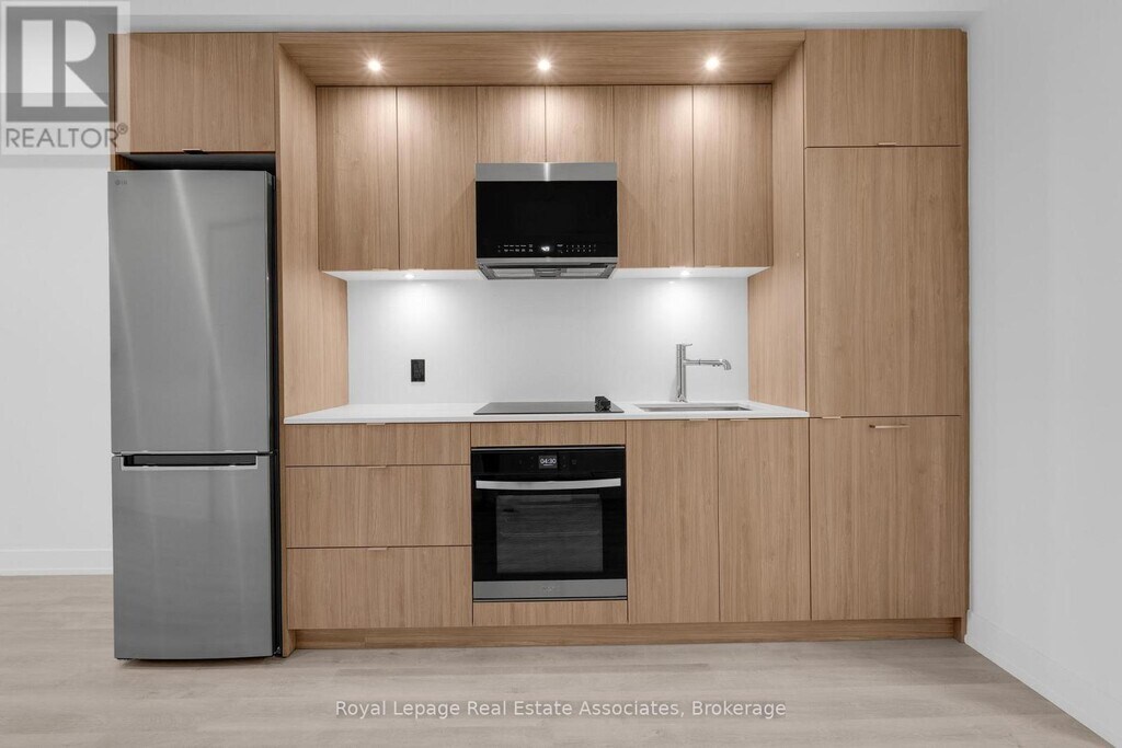 Welcome to Westerly 2 by Tridel,where modern design meets exceptional convenience in the heart of Etobicoke. This bright and efficiently designed 1-bedroom suite offers 493 sq. ft. of thoughtfully planned living space,featuring wide-plank flooring throughout and floor-to-ceiling windows that bring in plenty of natural light. The contemporary kitchen includes integrated appliances,sleek flat-panel cabinetry,quartz countertops,and modern under-cabinet lighting-all opening seamlessly into the living and dining area. The bedroom offers a full-height window and a spacious closet,while the 4-piece bathroom showcases clean,modern finishes and a backlit vanity mirror. In-suite laundry provides added convenience. Residents of Westerly 2 enjoy access to premium amenities including a fitness centre,yoga studio,party room,co-working lounge,kids' zone,outdoor terrace,and 24-hour concierge. Ideally located steps to Islington Station,multiple grocery stores,parks,dining,and the rapidly growing Bloor & Islington community,this suite offers the perfect blend of urban living and everyday comfort. (id:52069) ID#: 1968379