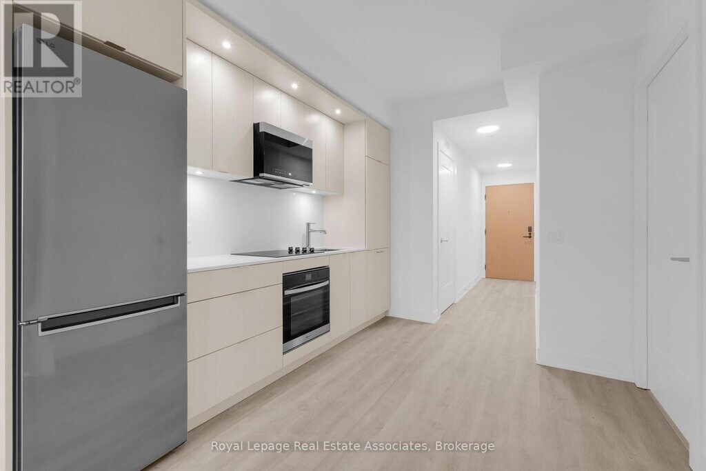 Welcome to Westerly 2 by Tridel,a modern condominium community offering thoughtfully designed living in the heart of Islington-City Centre West. This bright and efficiently designed 1-bedroom,1-bathroom suite offers approximately 493 sq. ft. of well-planned interior space with clean contemporary finishes and a functional open-concept layout ideal for modern urban living. The contemporary kitchen features sleek flat-panel cabinetry,quartz countertops,integrated stainless steel appliances,and under-cabinet lighting,flowing seamlessly into the combined living and dining area. Wide-plank flooring and large windows enhance the space with an abundance of natural light and a clean,modern aesthetic. The bedroom includes a full-height window and generous closet space,while the 4-piece bathroom showcases modern tilework,a deep soaker tub,and a sleek vanity. In-suite laundry is conveniently tucked away,and the suite includes both one parking space and one locker for added practicality and storage. Residents of Westerly 2 enjoy access to premium amenities including a fitness centre,yoga studio,co-working lounge,party room,kids' zone,outdoor terrace,and 24-hour concierge. Ideally located just steps to Islington Subway Station,Bloor Street shops and cafés,parks,and everyday conveniences,this suite offers a comfortable blend of modern living and exceptional connectivity in a desirable Etobicoke neighbourhood. (id:52069) ID#: 1968379