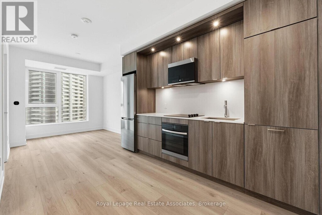 Located at Westerly 2 by Tridel,this newly completed residence offers modern,efficient living in the heart of Islington-City Centre West. Developed by one of Toronto's most respected builders,the building is well positioned near transit,parks,and everyday conveniences. This well-planned 1-bedroom suite spans 478 sq. ft. and features a bright open-concept layout designed for comfortable daily living. The contemporary kitchen includes integrated stainless-steel appliances,quartz countertops,and streamlined cabinetry,connecting seamlessly to the combined living and dining area. Expansive windows bring in natural light and enhance the sense of space throughout the suite. The bedroom is comfortably proportioned and includes a walk-in closet and large window,offering a functional and relaxing retreat. A modern 4-piece bathroom is finished with clean,contemporary detailing,while in-suite laundry is neatly tucked into a dedicated closet. The suite does not include parking or a locker,making it a practical option for those seeking a simplified,low-maintenance lifestyle. Residents enjoy access to amenities such as a fitness centre,party and meeting rooms,guest suites,and concierge service. Steps from Islington Station,shops,cafés,parks,and daily essentials,this suite offers convenient,well-connected living in an established Etobicoke neighbourhood. (id:52069) ID#: 1968379