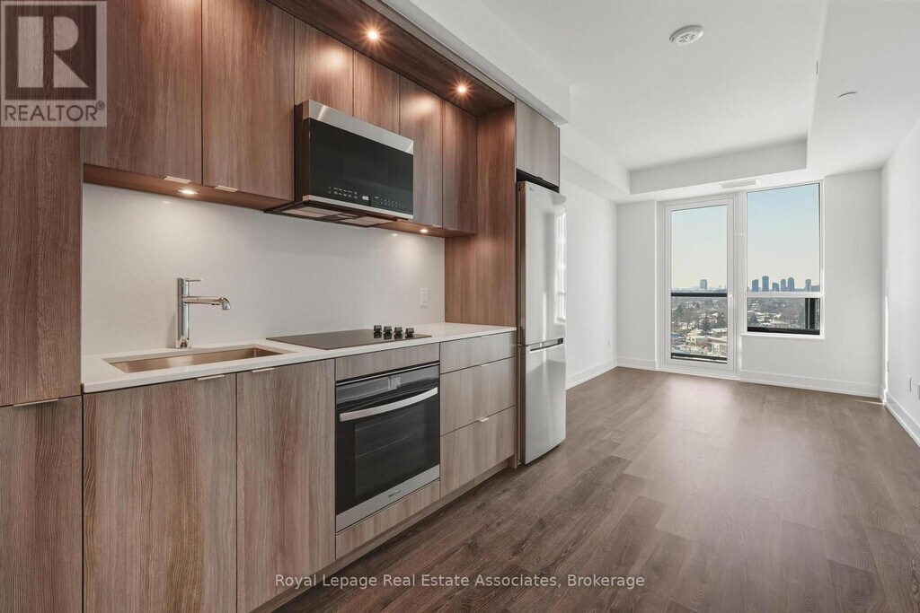 Welcome to Westerly 2 at 60 Central Park Roadway,where contemporary design meets everyday convenience in the heart of Islington-City Centre West. This thoughtfully designed 1-bedroom suite spans 509 sq. ft. and features a practical open-concept layout with clean finishes and comfortable proportions well suited to modern living. The modern kitchen is appointed with full-height cabinetry,quartz countertops,and integrated stainless-steel appliances,opening seamlessly into the combined living and dining area. Wide-plank flooring and large windows enhance natural light throughout the space,while a walk-out from the living area leads to a private balcony that extends the living space outdoors. The bedroom offers a well-proportioned layout with generous closet storage and a large window,complemented by a modern 4-piece bathroom finished with contemporary tilework and a sleek vanity. In-suite laundry is neatly tucked into a dedicated closet,maintaining a streamlined and efficient layout. Residents enjoy access to amenities including a fitness centre,party and meeting rooms,guest suites,and concierge service. Ideally located steps from Islington Station,parks,grocery stores,cafés,and everyday conveniences,this suite delivers comfortable,well-connected urban living in an established Etobicoke community. (id:52069) ID#: 1968379