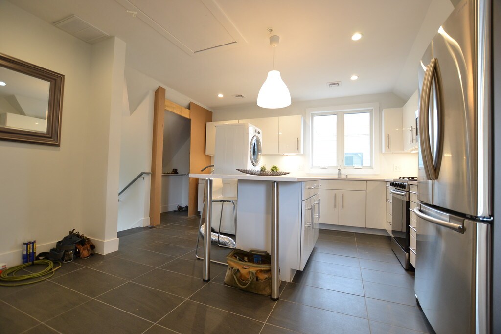 This BEAUTIFUL gut renovated 3 bed, 2 bath in Allston features all the amenities one needs to live comfortably in the city. The modern kitchen w/ stainless-steel appliances, white silestone counter-tops, and an island open to the living/dining area makes entertaining fairly easy. Bamboo flooring, Italian porcelain tiles, custom cabinets, recessed lighting, new roof, in-unit laundry, it just goes on and on. Not to mention a private balcony and the 2 off-street parking spaces included. Conveniently located steps to Harvard Business School, stadium, and Allston Campus. The Mass Pike, Storrow Drive, & Downtown Boston are all within reach. The commuter rail nearby makes commuting even more convenient. Don't Miss out! (One Month's Brokerage Fee Applies) Move-In Date: ASAP