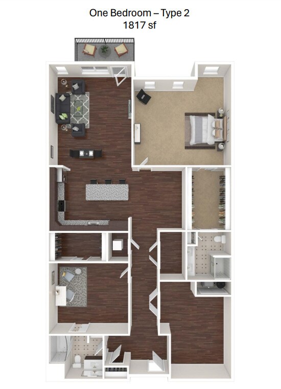 1 Bedroom - 1 - Floorplan 1 Large 1 Bed 2 Bath w/ Den - 2