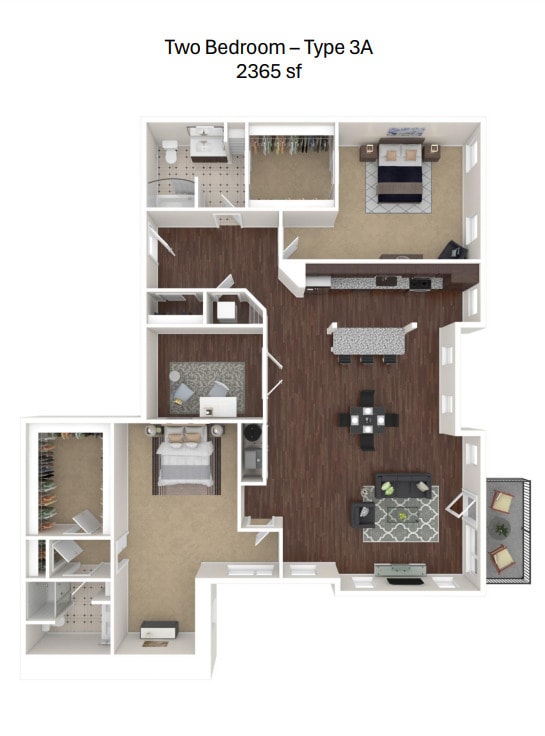 Apartment Model: 2 Bedroom w/ Den - 3A$3,6502 Bedroom, 2 Bath, 2365 sq ftAvailable Now![]()