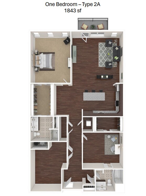 Large 1 Bed 2 Bath w/ Den - 2 - Floorplan 1 Large 1 Bed 2 Bath w/ Den - 2A