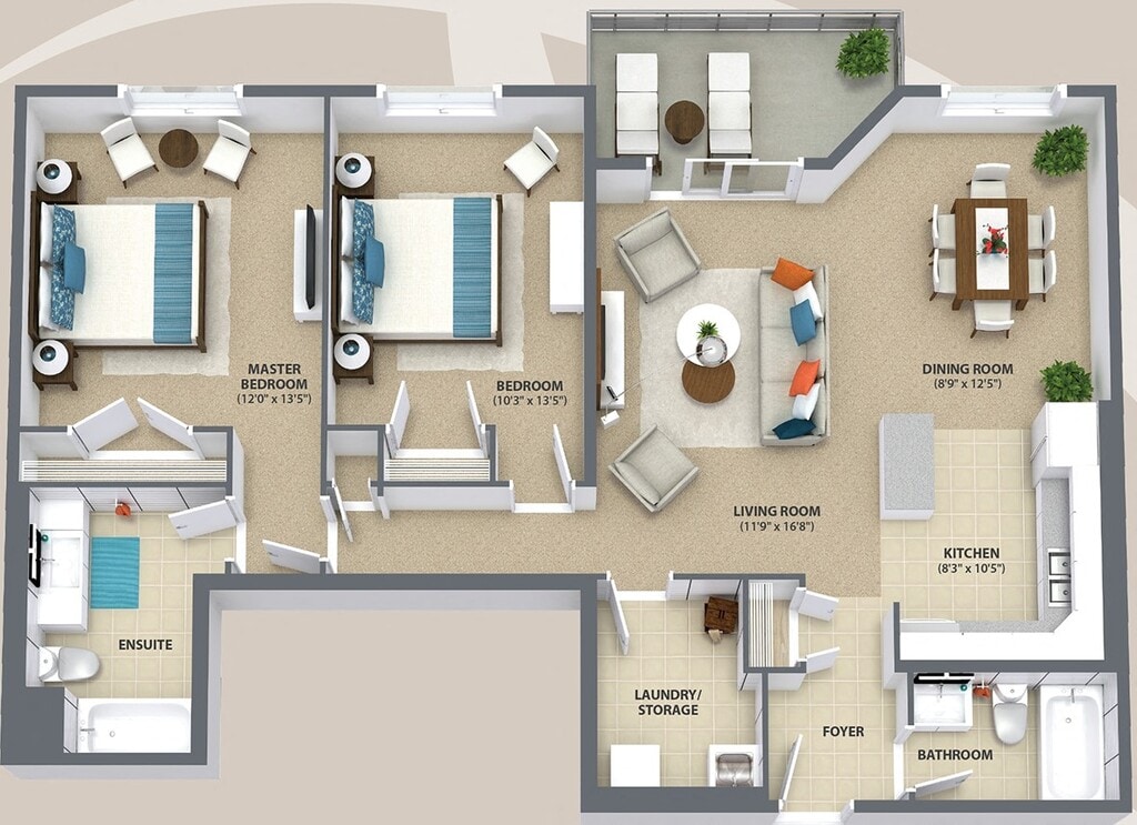 2 Beds, 2 Baths, 1197 sq ftAvailable NowModel Gallery