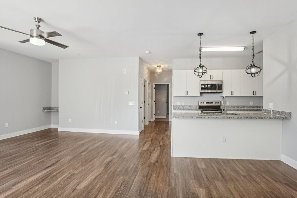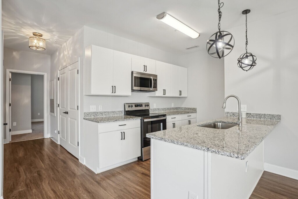 Welcome to 600 Station Square Apartments, located in the vibrant city of Greensboro, NC. This one-bedroom, one-bathroom apartment is designed with a modern aesthetic and high-quality features. The kitchen is equipped with top-of-the-line stainless steel appliances, complemented by elegant white cabinetry and stunning granite countertops. The apartment also boasts wood-like LVP flooring, adding a touch of warmth and sophistication to the space. At 600 Station Square Apartments, we combine style, comfort, and convenience to offer you an unparalleled living experience. Come and discover your new home today. Ask about the free rent special!