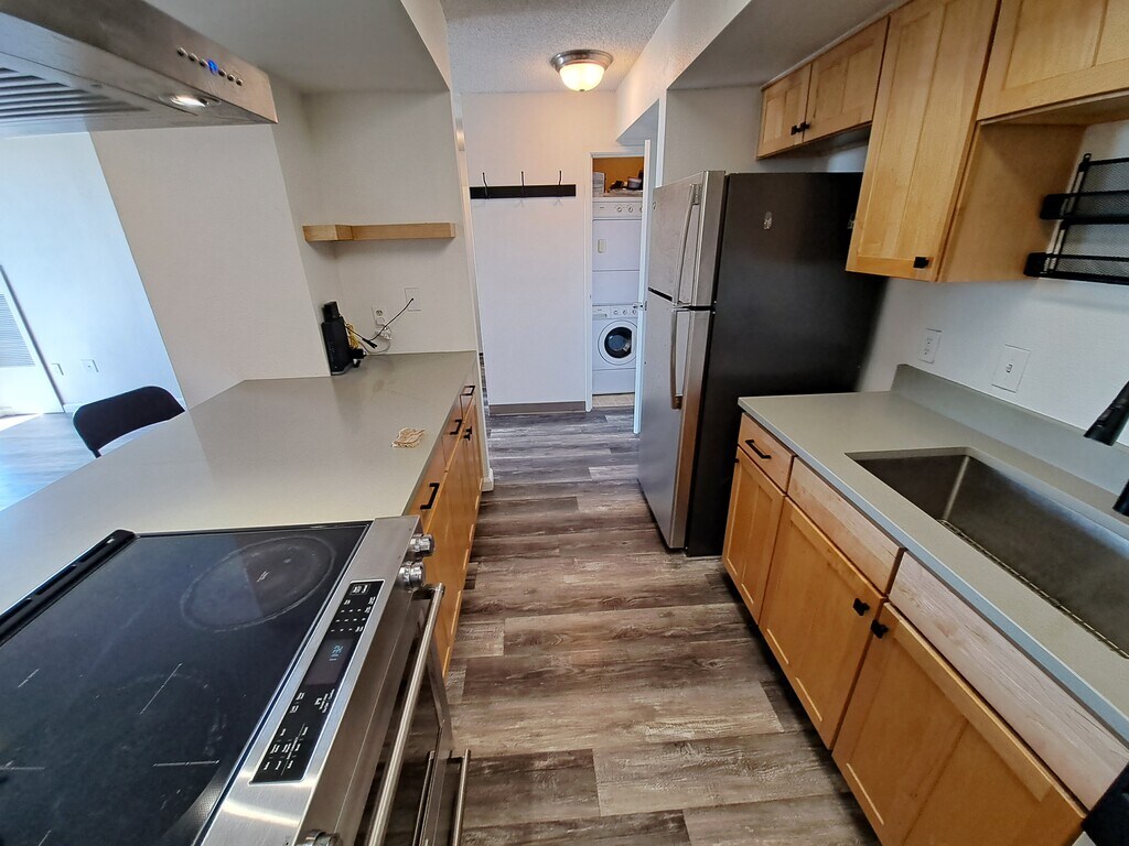 Convenient urban living at its best in this newly-remodeled 1-bedroom 1-bathroom condo, ideally situated at the crossroads of Baker, Capitol Hill, and LoDo neighborhoods, just steps from the Cherry Creek Trail. Details include: * Remodeled bathroom & kitchen, in-unit washer & dryer; almost all appliances have been replaced since 2022. * Sunny south-facing 5th-floor balcony looking over Denver * Price includes two off-street parking spots: one at surface level and one in the building's underground garage * Building amenities include a hot tub & pool, dog park, multiple gyms, and movie theater. * Non-corporate owner; I've lived in the building the last few years and have loved the area! Minimum 12-month lease with the option to renew, 1st month rent + $1600 deposit due upfront. Payment can be made by check, bank transfer, or Venmo/Zelle. Tenant pays for internet (Comcast & Starry available) and electricity ($50-80/month); all other utilities are covered by owner. Up to two (2) pets are allowed; cats and dogs 75 lbs only. Apartment is non-smoking indoors, smoking is fine on the balcony. Owner maintains the right to visit once per quarter with advance notice to perform HVAC maintenance duties.