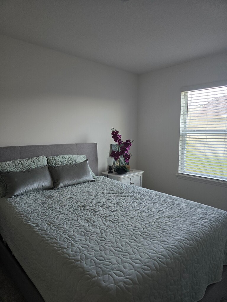 This room for rent features a shared bathroom in a newer home. The kitchen features granite countertops and stainless steel appliances, including a microwave, refrigerator with ice maker, toaster oven, air fryer. The bathroom is equipped with a tub/shower combination. Additional amenities include Wi-Fi and a smoke-free environment. Neighborhood is close to stores.