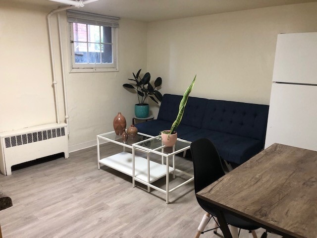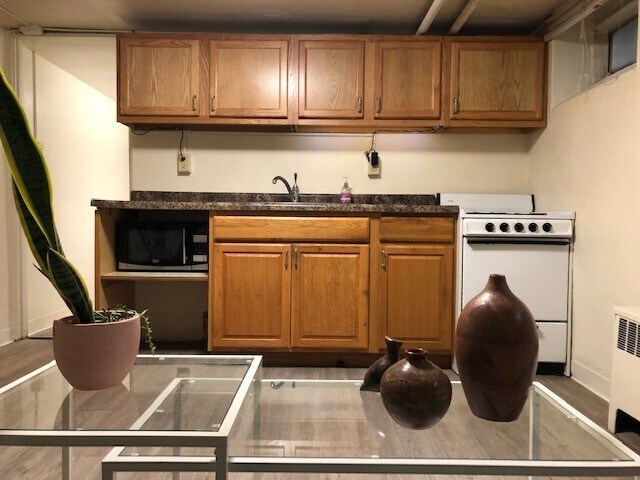 This is a basement unit in this building. This unit was fully renovated in 2021 and has 1 bedroom/1 bath with multiple windows providing the Unit with ample light; bathroom also has windows, new egress windows, kitchen, furnishings and a single bed are included. The building has shared washer and dryer in the basement just outside the apartment. All utilities are included for an additional $125 additional monthly fee (Electric, Heat, Gas, Water, Recycling, Trash and City Sewer).