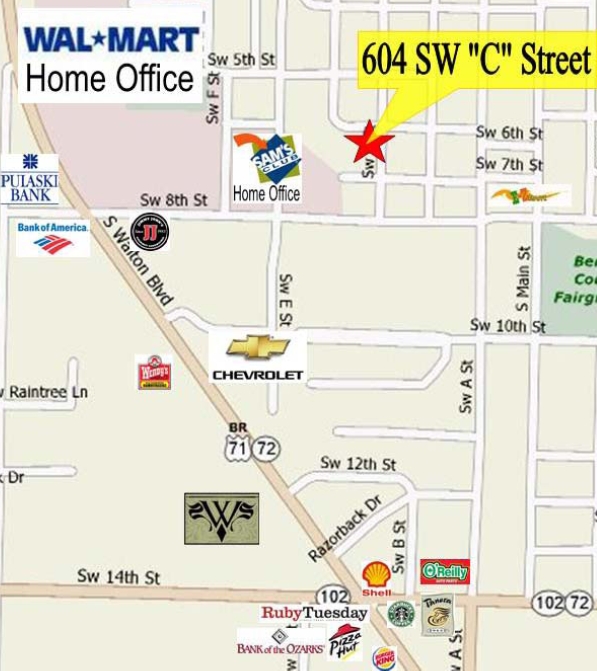 604 SW C St is located in the Downtown Bentonville Neighborhood and 72712 Zip code of Bentonville, AR.