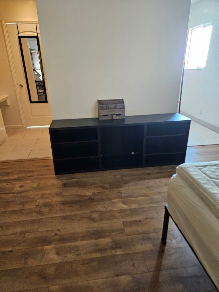 First floor Partially furnished bright Studio, unit 6. Completely updated - flooring, kitchen, appliances, bathroom, window coverings. Gated property with onsite manager and laundry facilities. Public transportation is very close. Appromately 420 sq ft. Please email for appointment. $35 fee for credit report. Available immediately. Santa Monica Blvd & Gower area, near studios. Loads of storage (two closets, hallway, kitchen). Kitchen is separate with new 18 cubic refrigerator. Bathroom has new shower tub with shelves.