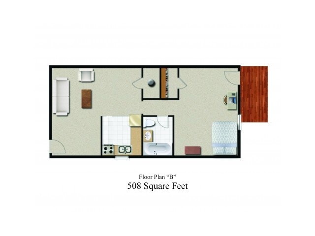 Apartment Model: Floor Plan B1 Bedroom, 1 Bath, 508 sq ftUnavailable![]()
