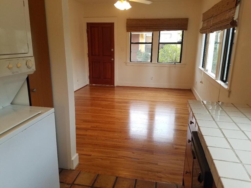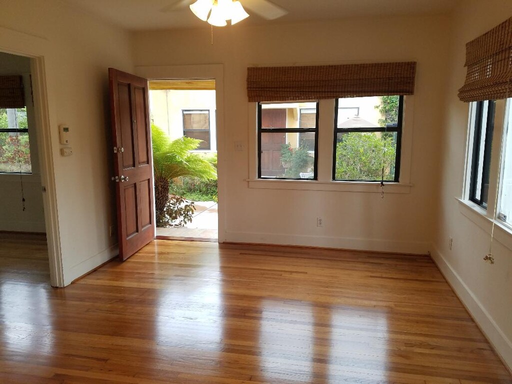 Freestanding bungalow, lots of light. Great neighborhood, one block to Abbot Kinney shopping and restaurants, 4 blocks to Venice Beach. Near Abbot Kinney and Venice Blvd. Newly refinished hardwood floors. Washer/dryer/dishwasher in apartment. Ceiling fans in living room and both bedrooms. Bamboo shades and blackout blinds included. Extra storage along with shared side yard. Own water heater. Shared courtyard. No pets. One year lease. Available now and during September. No smoking property. Accessible street parking. Contact for appointment to view.
