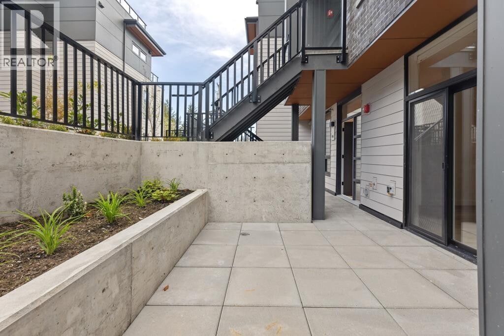 This spacious garden-level home offers 901 sf of living space with 2 bedrooms,a flex room,and 2 bathrooms,finished with light laminate flooring throughout. Through serene courtyards,step down to an impressive 362 sf private patio with concrete pavers and planters-perfect for multiple outdoor seating areas,complete with gas and water bibs for barbecues and easy cleaning. The bright living and dining area features large windows and sliding doors overlooking the patio. The gourmet kitchen boasts two-toned cabinetry,a large island with breakfast bar,quartz counters,porcelain slab backsplash,and high-end appliances including a Fisher & Paykel gas range. The primary bedroom includes a walk-in closet and elegant ensuite. Flex room ideal for a home office. Includes parking and locker. (id:52069) ID#: 1601977