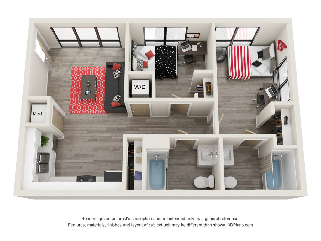 2 Beds, 2 Baths, 769 sq ftAvailable NowModel Gallery