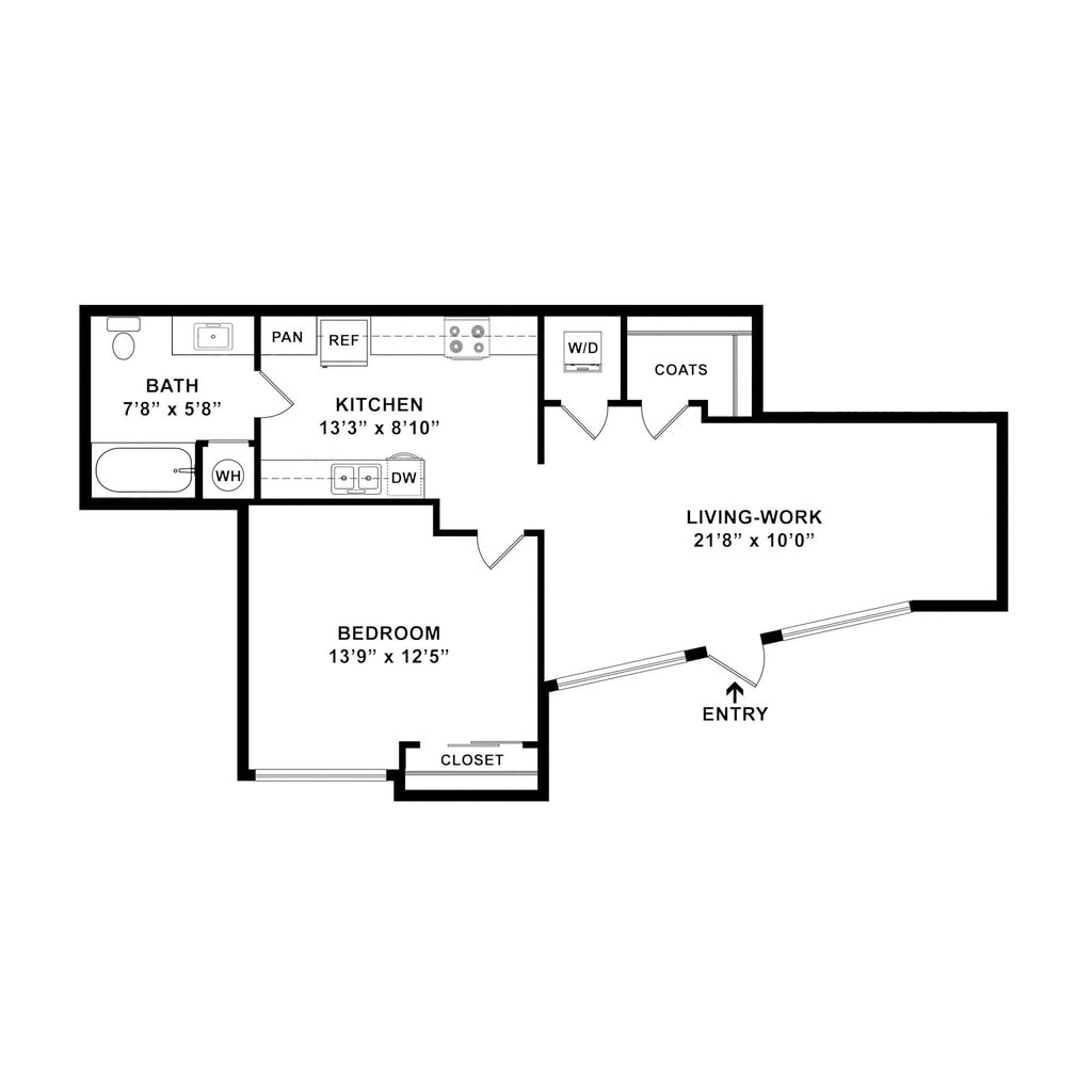 One Bedroom, One Bath | Live/Work Combo Space - Floorplan 8 ![]()