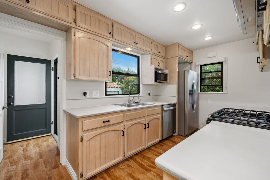 Spacious & Charming Westport Heights Home. This beautifully maintained single-story residence in one of Westchester’s most desirable neighborhoods offers 4 bedrooms, 2 baths, and just under 2,000 sq. ft. of comfortable living space. Freshly painted, the home blends timeless character with modern updates, including new appliances and hardwood floors. The light-filled living room features a cozy fireplace and large picture window, while the open-concept kitchen and family room provide the perfect setting for everyday living and entertaining. French doors open from the bonus room/bedroom to a large covered deck—ideal for gatherings, outdoor dining, or relaxing year-round. Additional highlights include generously sized bedrooms and a detached two-car garage. Located on a picturesque, tree-lined street in a family friendly neighborhood, you’ll enjoy close proximity to beaches, top-rated restaurants, local parks, excellent schools, and the Silicon Beach tech hubs of Playa Vista and Culver City. With easy freeway access, this home offers both charm and convenience in the heart of Westchester.