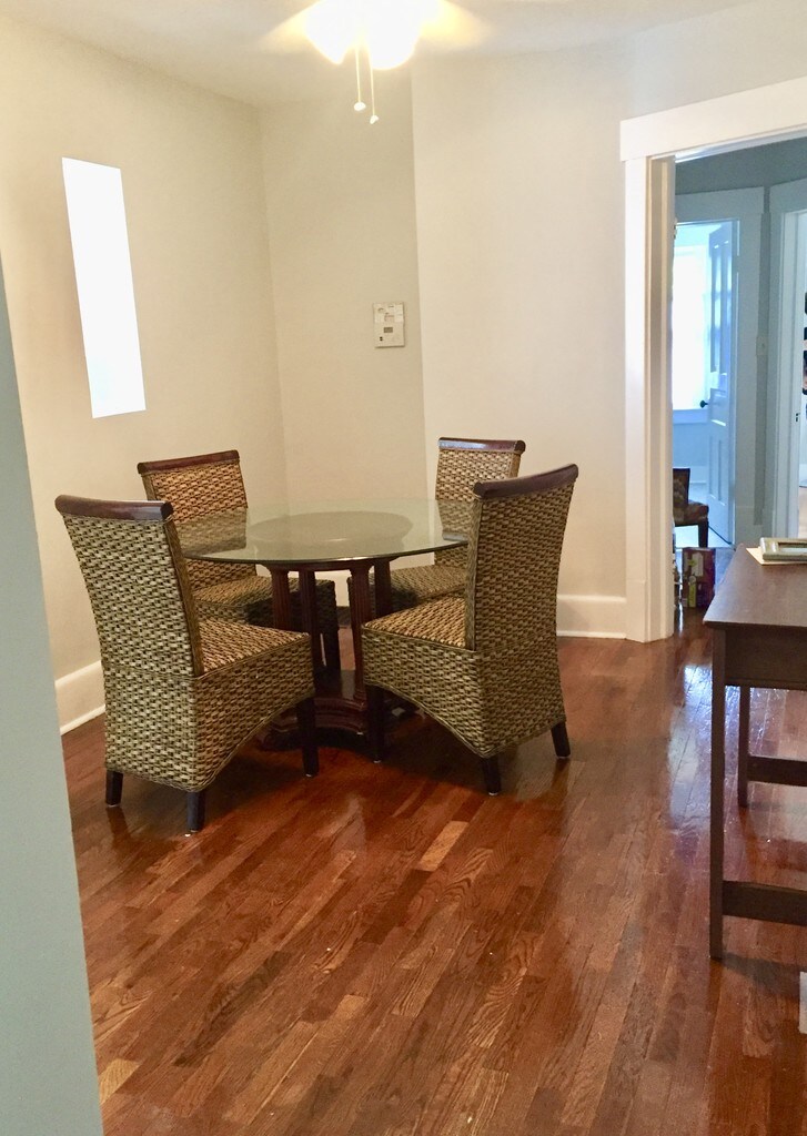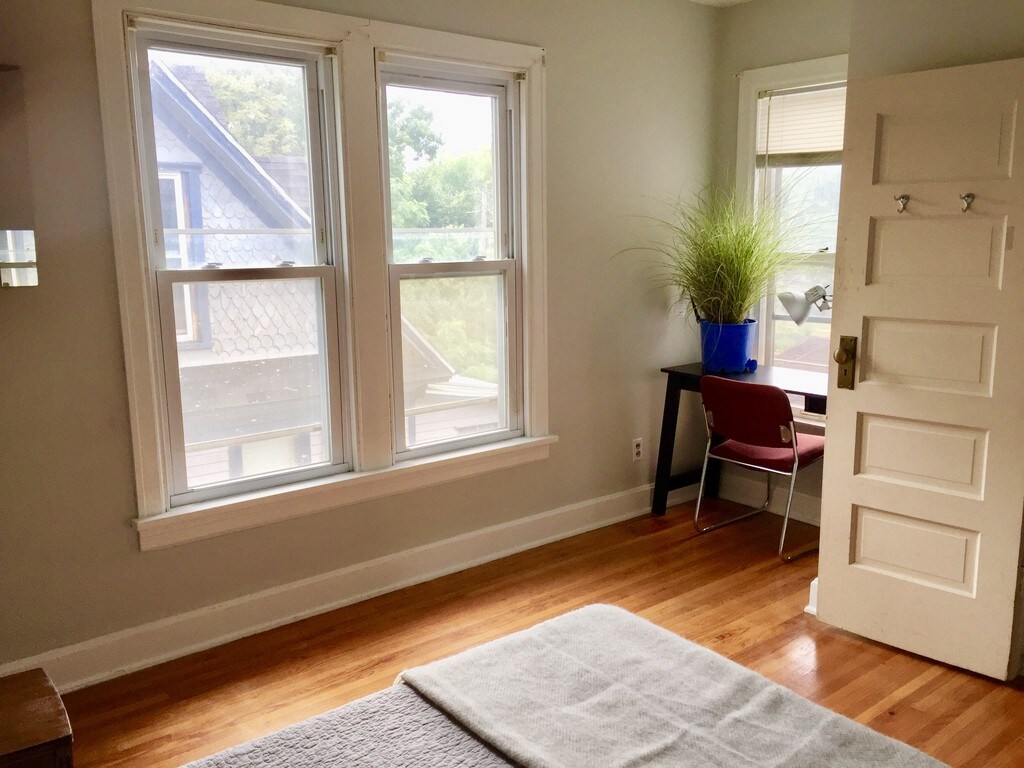 Property is an over-under duplex located in close proximity to the University of Illinois. There are 3 units in this restored vintage building, and this one is on the second floor. This unit is 1,076 sqft with two bedrooms, one bathroom with window, a rear entrance with mudroom, kitchen with dishwasher, gas stove, fridge, large living room, large dining room, central air, energy efficient furnace, shared washer/dryer in basement, with off-street parking spaces. The furnace is individual to the apartment and you can control your own temperature, all furnaces are energy efficient. It is fully furnished!. Utilities are not included. We do all outside maintenance so you don't have to!
