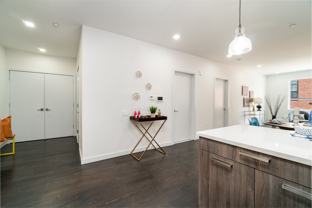 NO SECURITY DEPOSIT!! FREE PARKING!! Amazing opportunity to live luxury at Hudson Square! Newer construction building (built in 2019) offers luxury lifestyle at a great price! The unit features 1 bed 1.5 bath, 835 square foot , open lay out concept, chef kitchen with stainless steel appliances and granite countertop and island overlooking the dining room and living room area. More features: hardwood floors throughout, heated floors in bathroom, stainless steel appliances, tons of closets space, solar shades, video intercom, LED lighting and soundproof walls. The unit comes with 1 garage parking spot that's included in the price. Gym is included as well. In unit laundry.. Building also offers no security deposit option to qualified tenants! Available 11/04 1 month broker fee applies. NO SECURITY DEPOSIT OPTION