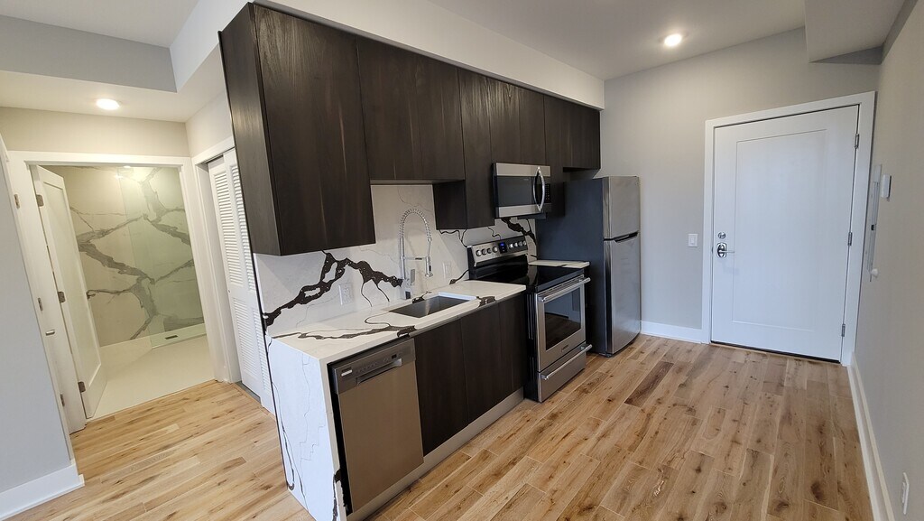 Limited Time Offer: Security & One Month's Rent to Move-In!! Brand New Building! Waterfront View! Right next to Penn's Landing! Pet Friendly! Garage Parking Available! Our magnificent spectacular apartment community is brand new and consists of 6 floors of luxury and convenience. Our apartments have hardwood floors, LED lighting and a washer and dryer inside each unit. Kitchens include custom cabinetry, granite countertops, stainless steel appliances and great closet space. The apartment comes with speakers embedded in the ceiling as well as wall mounted T.V brackets and electrical fireplaces already installed. Here you'll discover an elegant and spacious rooftop, where you will be able to use our brand new kitchenette while enjoying a great view of the waterfront and the Ben Franklin Bridge. The building is close to the city but far enough away where you can lay back and relax. If you are looking to take a stroll in the heart of the city, it is a short 10 minute drive. If instead you want to enjoy a nice walk along the waterfront or trails, it is only a 3 minute walk!