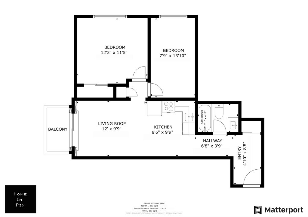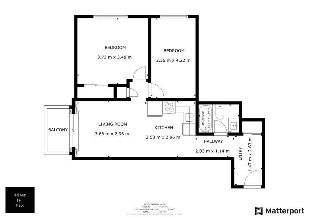 2 Bedrooms, 1 Bathroom - Floorplan 2