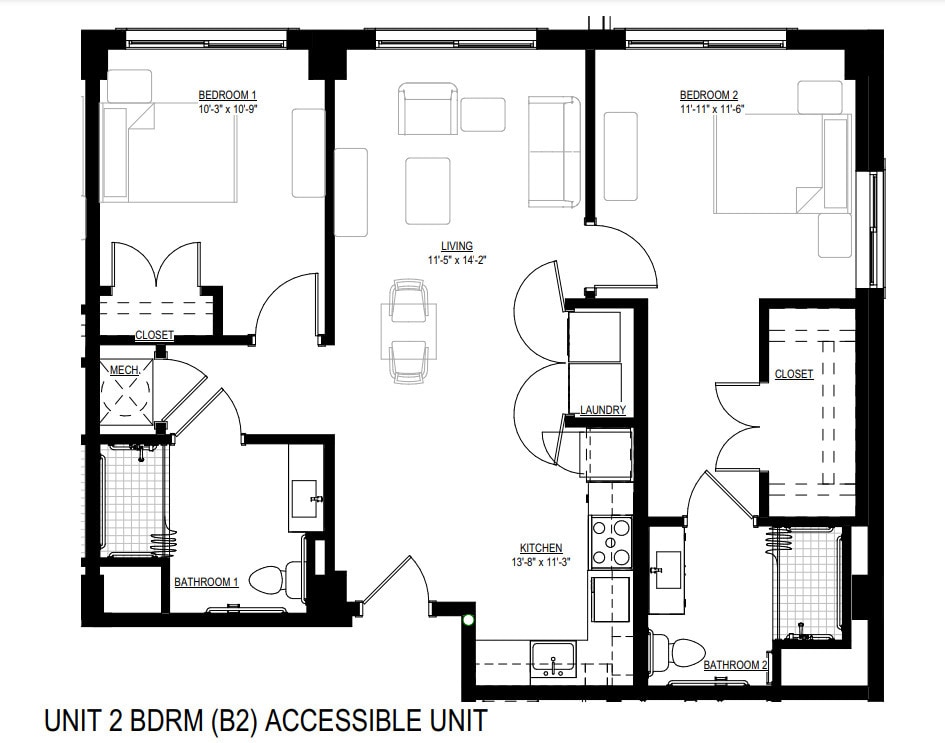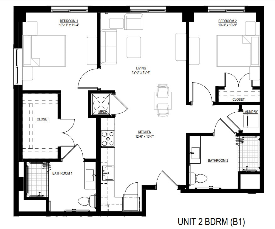Apartment Model: B1 - Income Restricted - See Below2 Bedroom, 2 Bath, 1022 sq ftUnavailable![]() - B1 - Income Restricted - See Below - Floorplan 1