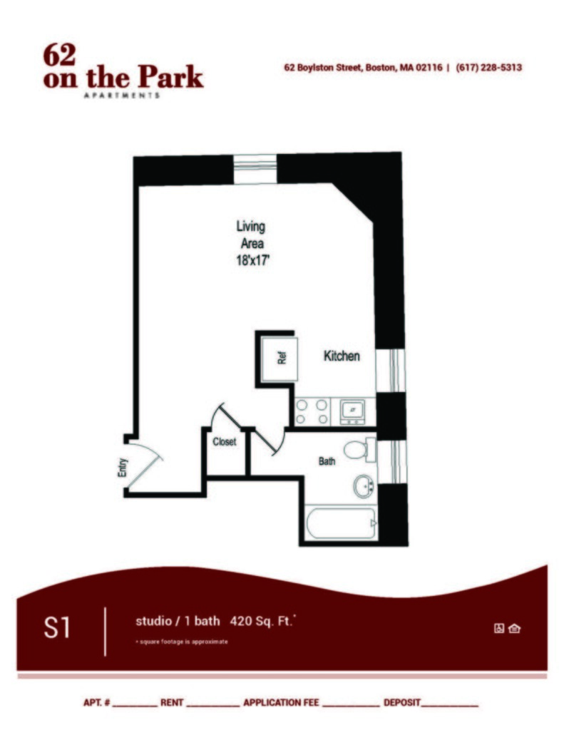 62 on the Park offers Studio to 1 Bedroom apartments starting from $2,500 and having 398–509 sq ft. Here is the current pricing and availability: