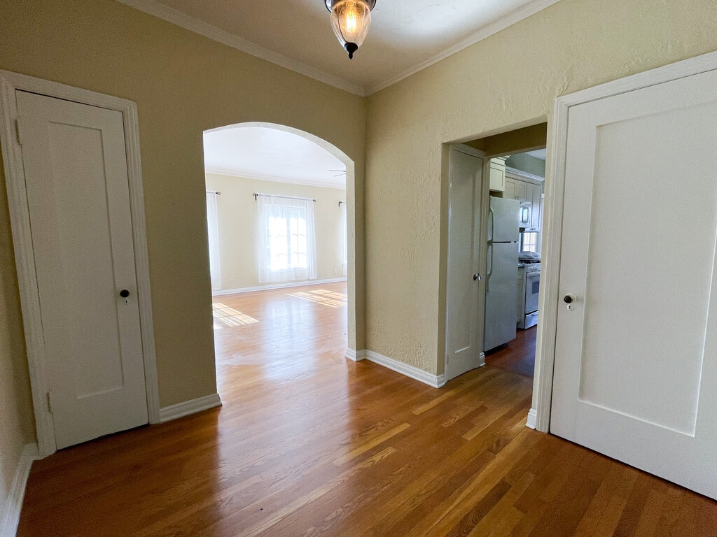 Stunning building designed by famous architects Walker & Eisen (Beverly Wilshire Hotel, National City Tower). Beautifully refurbish with a million dollar budget. 1920's classical lobby w/50-foot-high atrium, and open magnificent skylight! These 1500+ square foot units feature original Art Deco 1920s Crown moldings, large walk-in closets and hardwood floors throughout. Newly renovated bathroom with full tub. Extra parking near property. On-site Laundry room. Secured building with intercom entry. Only a ½ block from Purple Line Metro subway. Caged Elevator.