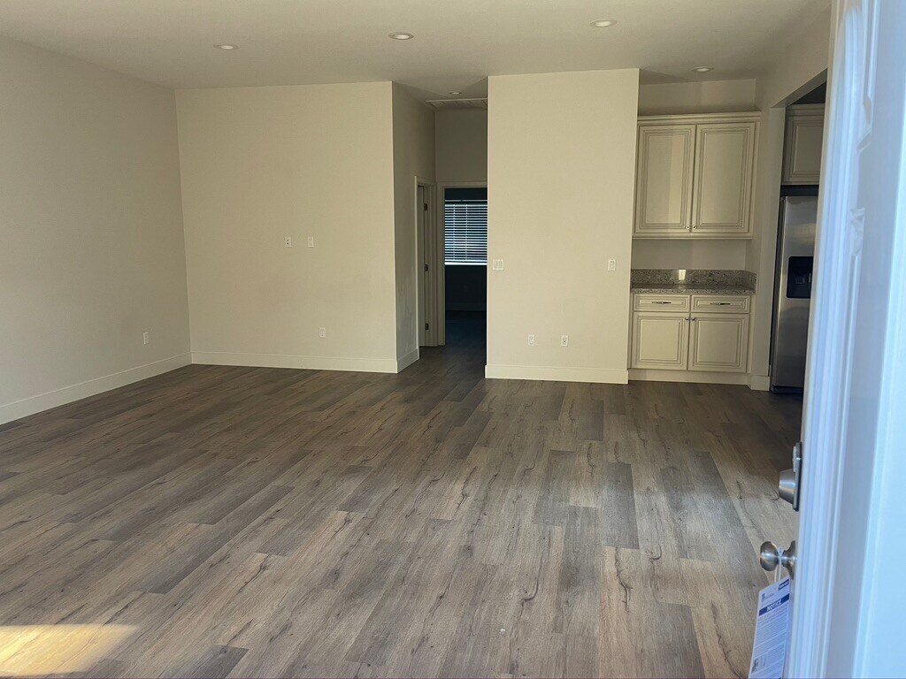 New construction, this high ceiling 2 bedroom 2 full bathroom house seats back on the property. Has a large semi open floor plan living room kitchen, and a large laundry room. Privet walkway and a nice back yard. New appliances, air condition and heater. A “must see”. Refrigerator, stove, dishwasher, microwave, clothes washer and dryer are included along with nest thermostat. All light fixtures are LED (keeps cost down). Call me let's get you in this beautiful home. Perfect for everyone. No PETS please The backyard has been updated and now has "AstroTurf" green area for the most part.
