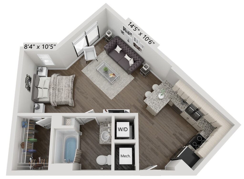 Studio, 1 Bath, 542 sq ftAvailable NowModel Gallery