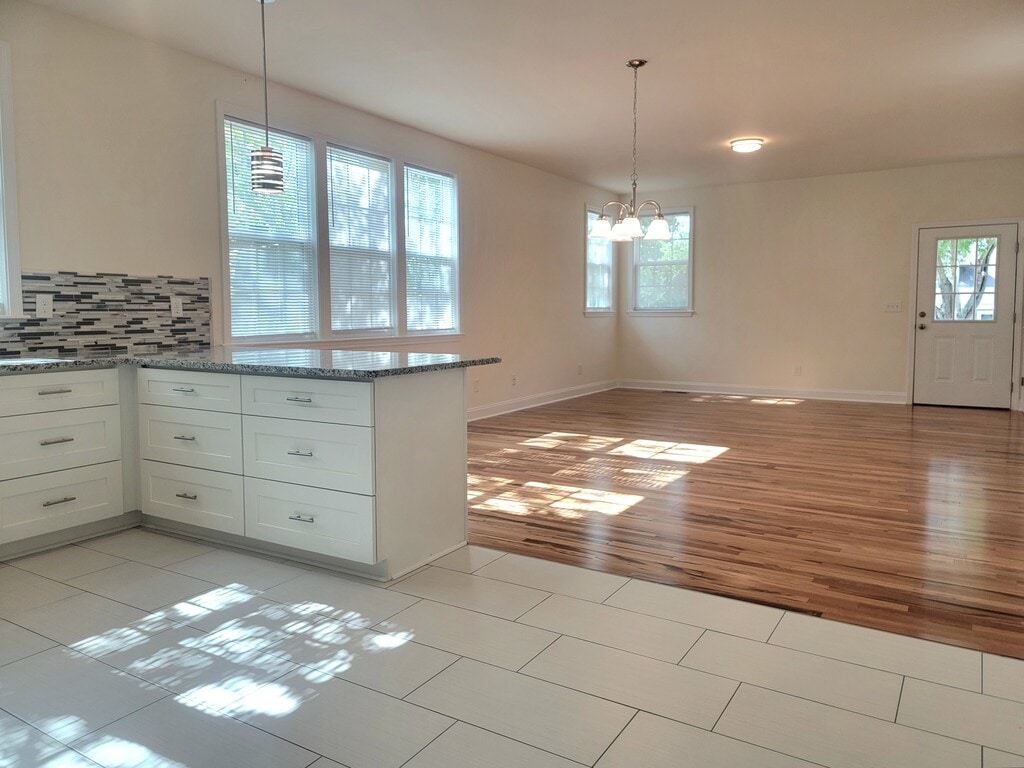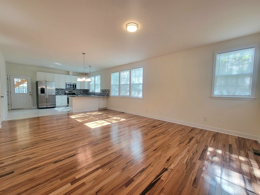 First floor duplex built in 2024 lives comfortably. Enjoy the brightly lit open floor plan with Brazilian Koa hardwood floors in living room. The kitchen has granite countertops with tiled backsplash and soft close cabinets. The bathroom has tiled floor, quartz countertops, double sink vanity with soft close drawers, tiled tub, and stackable washer/dryer. With 9' ceilings and plenty of windows, the space feels bright and lively.