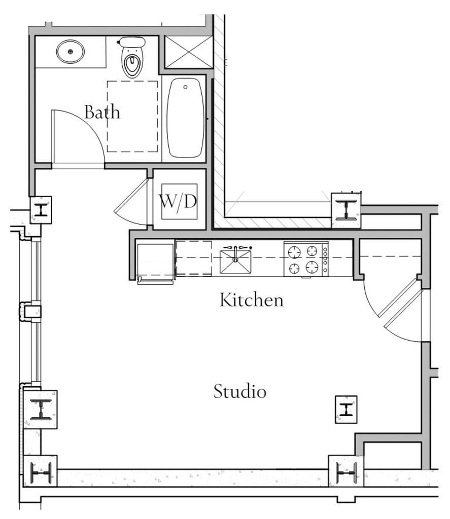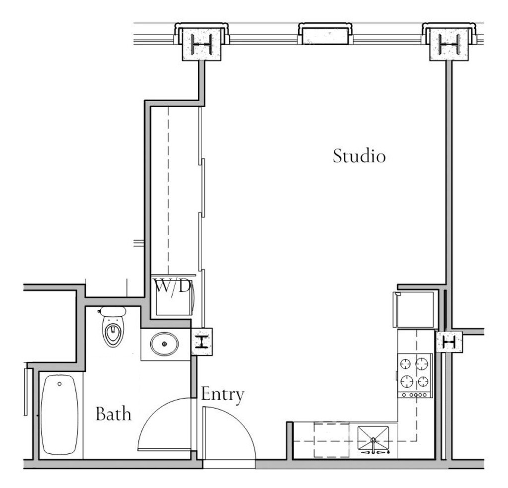 Apartment Model: Floorplan D$2,200Studio, 1 Bath, 514 sq ftAvailable NowFloor plans are artist's rendering. All dimensions are approximate. Actual product and specifications may vary in dimension or detail. Not all features are available in every rental home. Prices and availability are subject to change. Base rent is based on monthly frequency. Additional fees may apply, such as but not limited to package delivery, trash, water, amenities, etc. Deposits vary. Please see a representative for details.