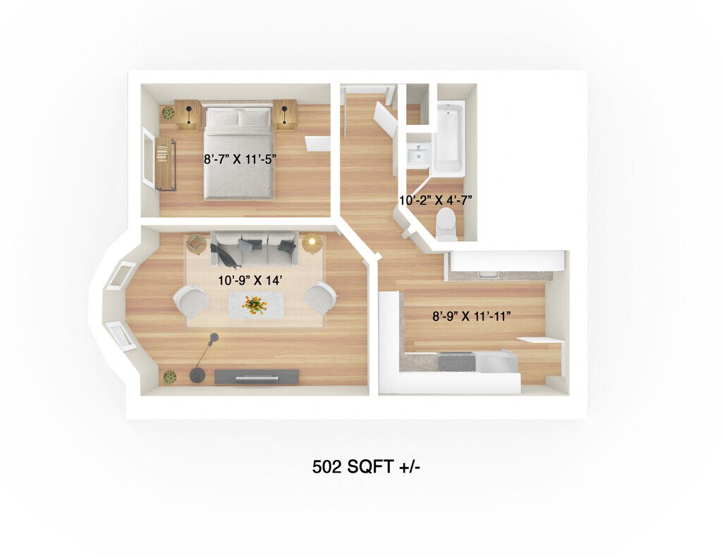 1 Bed, 1 Bath, 502 sq ftAvailable Dec 1Model Gallery