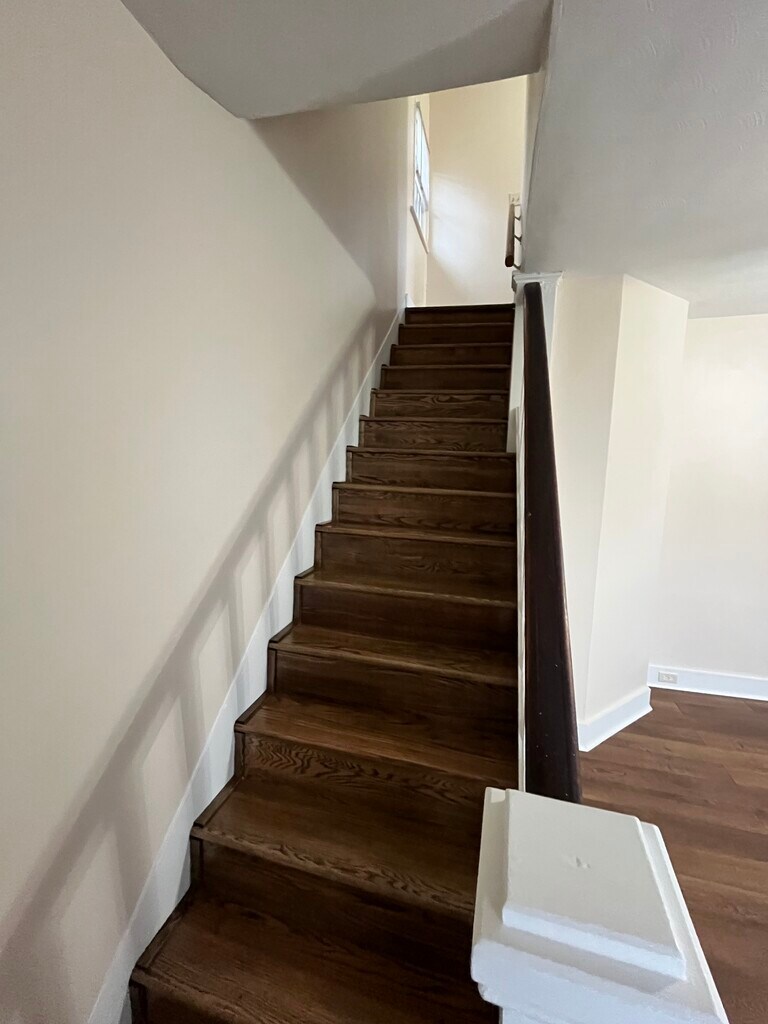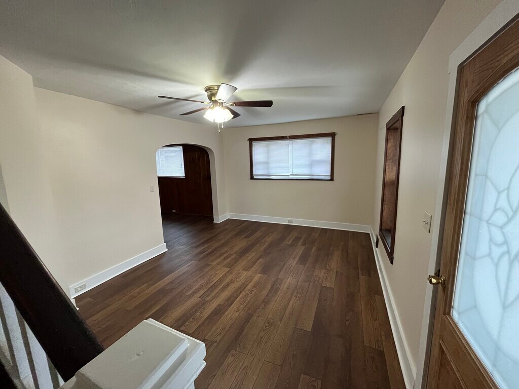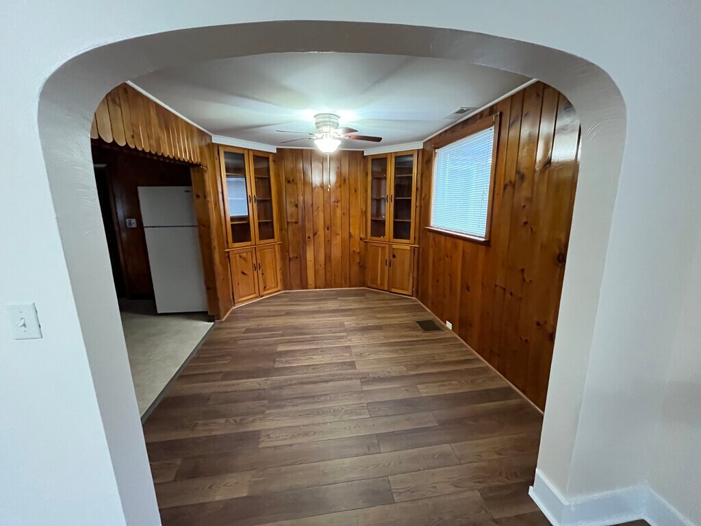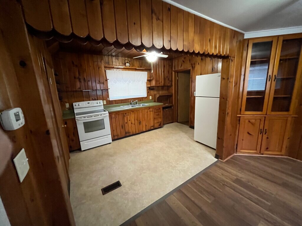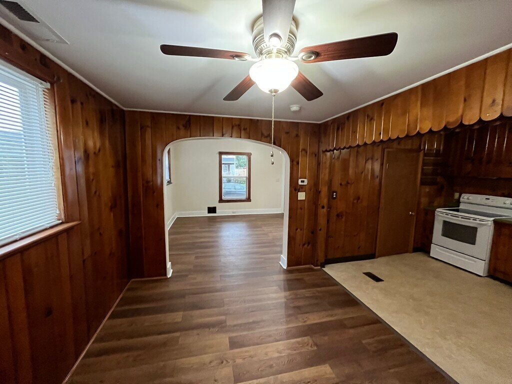 1950’s single family dwelling with front and back yard. Recently remodeled - laminate flooring throughout. Large kitchen and dining room in aged knotty pine. Separate living room, first floor laundry hookups, 2 bedroom plus bonus room upstairs. Tenant pays all utilities: electric, gas, water, refuse and sewage. Tenant also pays for lawn care and snow removal. Garage not included.