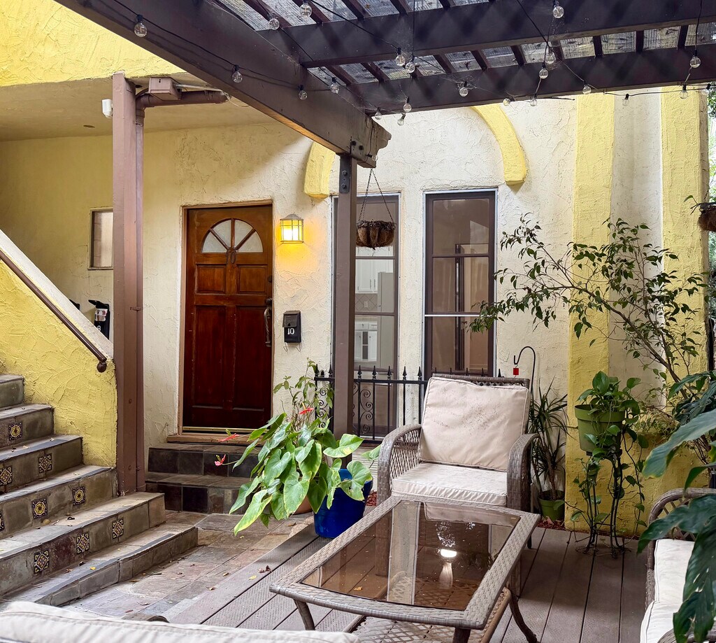 The 10 units building is located in the West Hollywood/Melrose area. It was built in 1928 to house the staff of Paramount Pictures. Our one bedroom apartments offer a lovely and serene stay in a monitored gated garden with a pond, pergola and bbq. We are located at 100 feet from Sycamore Ave & Melrose Ave.