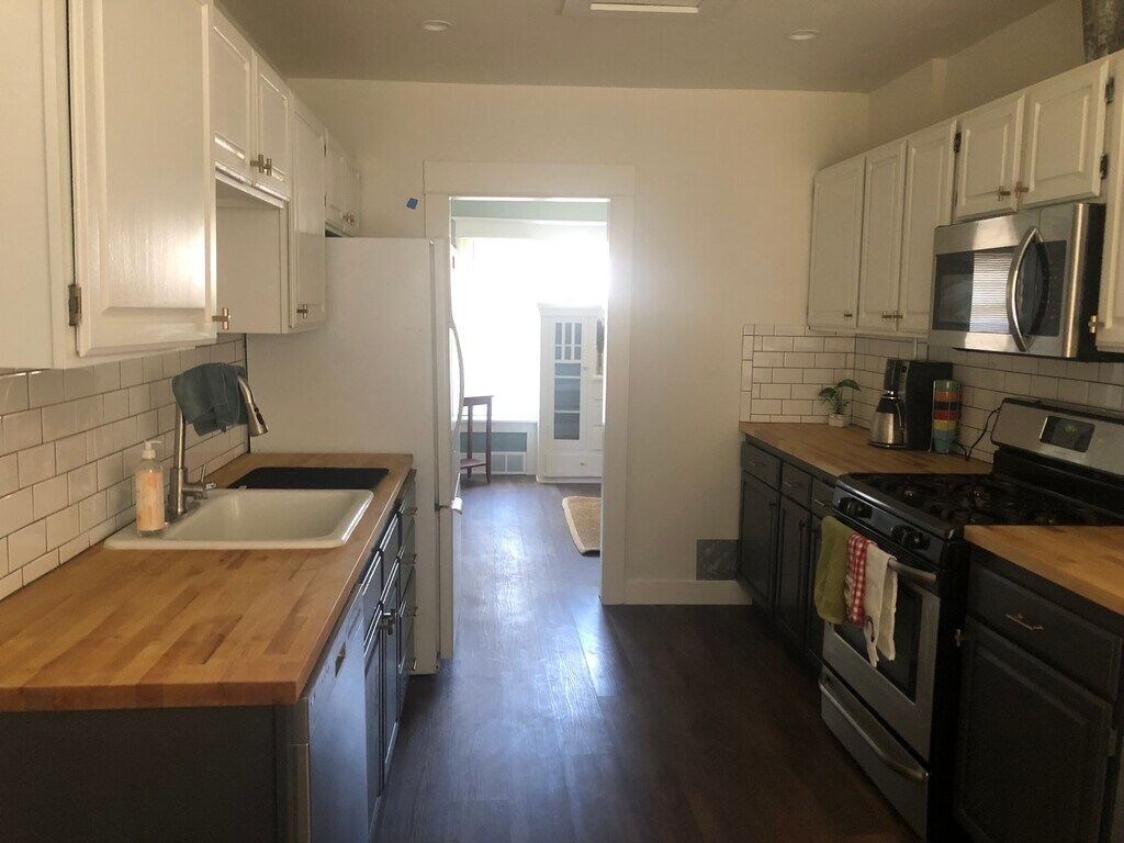 Fully updated 2 bedroom house with original 1920’s light fixtures updated with new wiring, crown molding and chair rail for additional charm. Upper unit in this duplex has 2 bedrooms, living room with fireplace, dining room, kitchen, den, and a quaint bathroom with original claw foot tub. Shared laundry in the basement, off street parking and all utilities except gas included. Optional single stall garage for additional rent.
