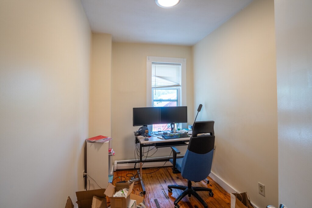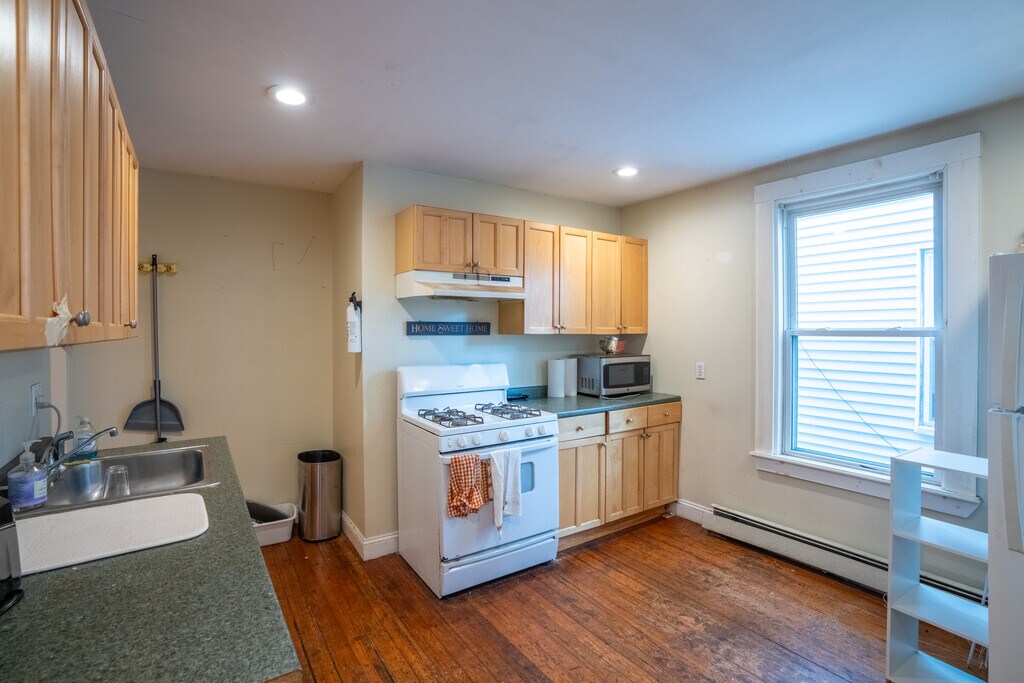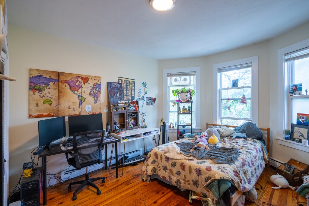 Prime Location! Spacious multi-level 4bd/2 bath unit + 3bd/1 bath unit located in Cambridge near Harvard and Central with comfortably sized bedrooms that provide lots of privacy. The unit features a common-area kitchen with newer cabinets matching the hardwood flooring. The basement living area is enormous, has plenty of space for entertainment, can accommodate different room layouts, and includes a bathroom and a big closet. Cozy back patio and deck with adequate space to relax and view the neighborhood. There is ample space in the shared backyard. Modern, tiled bathroom with hardwood floor finishing and clean white cabinets. Laundry in the basement.
