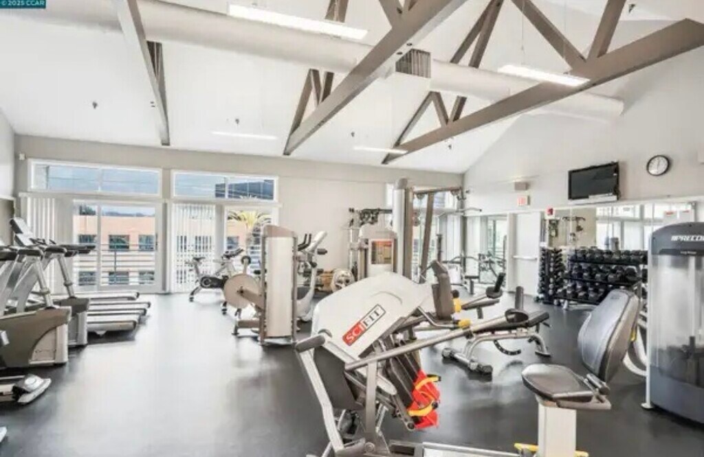 Featuring an open layout filled with natural light and a smart, functional design. The kitchen is equipped with stainless steel appliances including a refrigerator, oven, and dishwasher, and the in-unit washer and dryer add extra convenience. A private balcony with additional storage offers serene views of the pool and nearby hills perfect for relaxing outdoors. The unit also includes a spacious walk-in closet and one assigned garage parking space. Bridgewater is a secure, well-maintained community with 24-hour staff and controlled access throughout the building, including the mailroom. Residents enjoy access to a range of amenities such as a swimming pool, hot tub, sauna, fully-equipped fitness center, and a clubhouse with a lounge, game room, and dedicated workspaces. Outdoor BBQ areas and landscaped common spaces foster a peaceful, community-oriented environment with friendly neighbors and a quiet, respectful atmosphere. The location is incredibly convenient just minutes from Bay Street shopping, Trader Joe's, IKEA, and a variety of local restaurants. Commuters will appreciate the easy access to major freeways, Amtrak, BART, and the free Emery Go-Round shuttle to MacArthur BART, making it an ideal spot for getting to San Francisco, Oakland, or Berkeley with ease.