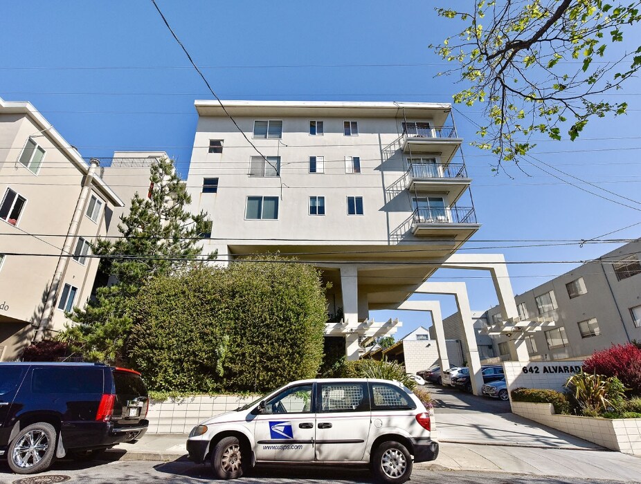 642 Alvarado is a Mid-Century Modern marvel situated on a Noe Valley hilltop near the Castro. This building in a family-friendly neighborhood mixes Hollywood-worthy views of Downtown and the East Bay (a scene from The Streets of San Francisco was shot on the rooftop) and proximity to shopping, entertainment, and other staples.The building's unique design - situated above ground on piers sunk deep into the bedrock - is just one of 642 Alvarado's standout features. Dynamic, clean lines, an emphasis on minimalism, and lush gardens define the common spaces, while residents also enjoy open floor plans, generous windows, on-site laundry, and other contemporary conveniences.642 Alvarado is a Walker's Paradise, close to 24th Street and Castro Street shops, restaurants, bars, cafes, and more. Douglas Playground, Noe Children's Playground, and Noe Valley Courts offer plenty of green space for dog-walking and recreation. 642 Alvarado is bikeable, and nearby public transportation options include Muni and 24th Street BART.This unit is a rental unit subject to the San Francisco Rent Ordinance, which limits evictions without just cause, and which states that any waiver by a tenant of their rights under the Rent Ordinance is void as contrary to public policy.
