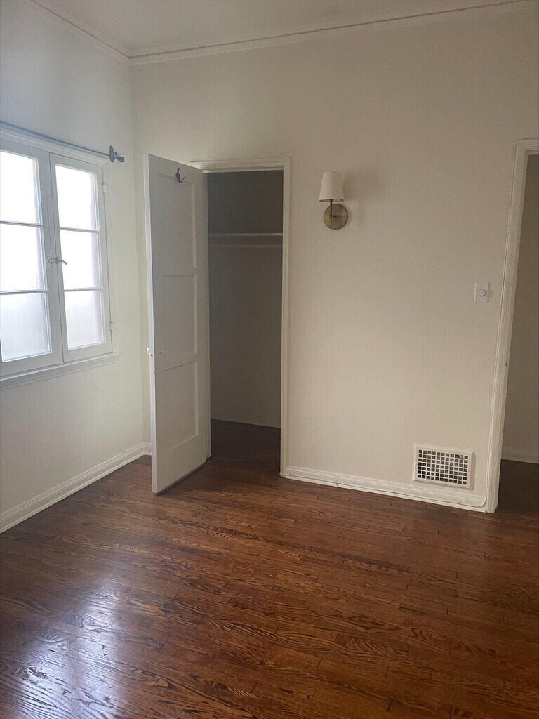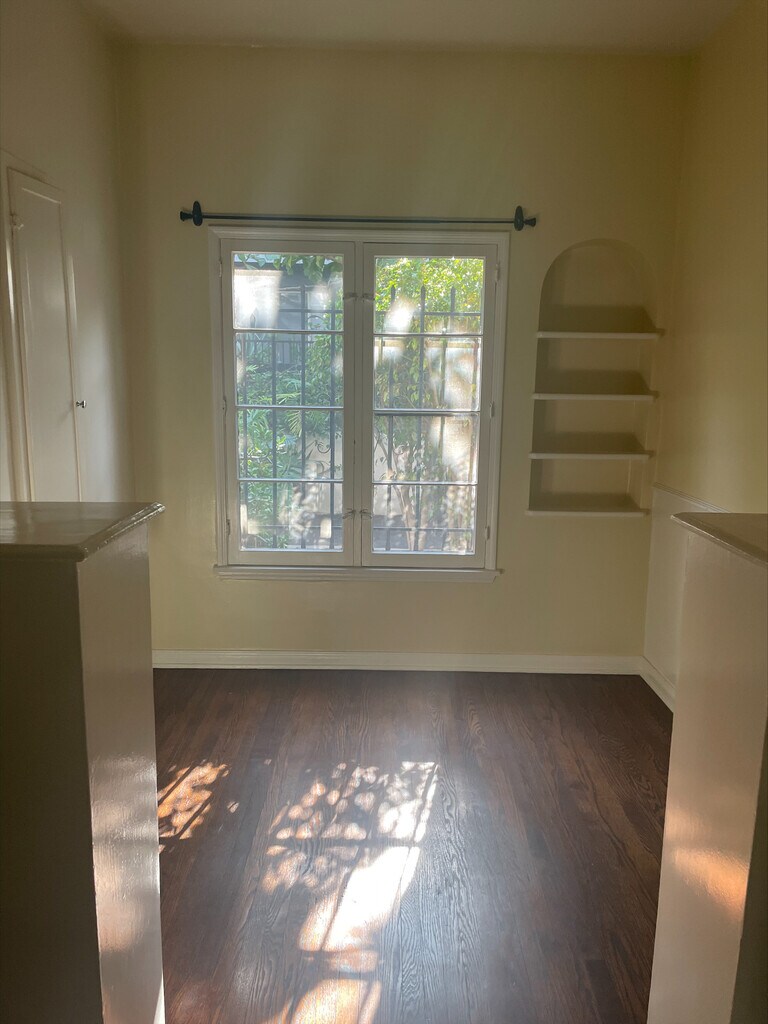 Beautiful vintage 1930's 8 unit building. Lovely shared courtyard in the middle of the building, and a shared yard in the back of the building. This unit has a front and back door with a separate living room, dining area, bedroom and kitchen and has ample storage space. Original hardwood floors in the living room and bedroom, and tile in the dining area, kitchen and bathroom. The building is in the heart of Miracle Mile, and is very centrally located. You will be walking distance to markets, museums, The Original Farmer's Market/The Grove, etc.