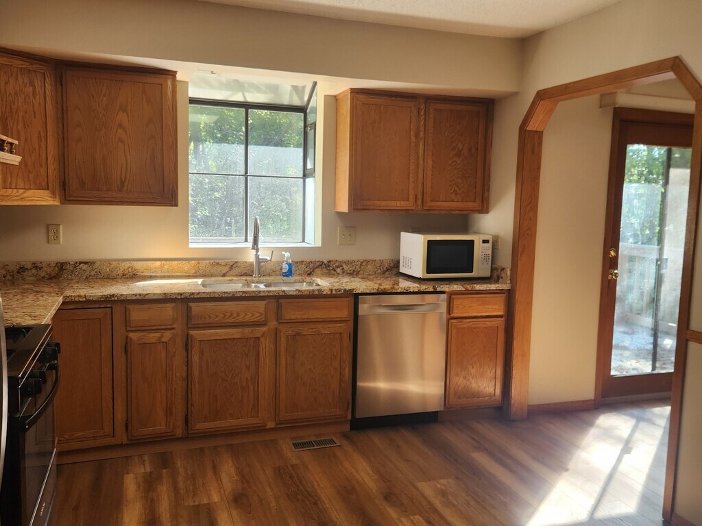 Spacious 5BR/3BA Single-Family Home Over 2,800 Sq Ft! Welcome to this beautifully updated 5-bedroom, 3-bathroom home offering over 2,800 square feet of comfortable living space. The modern kitchen features brand-new flooring, sleek countertops, and stainless steel appliances perfect for both everyday living and entertaining. Enjoy the bright and airy living room with a cozy fireplace and large windows that fill the space with natural light. The adjoining dining room opens to a deck overlooking a serene wooded area, offering peaceful views and added privacy. The fully finished lower level includes two bedrooms, a full bathroom, a spacious family room with walk-out access, and a convenient laundry/storage room.