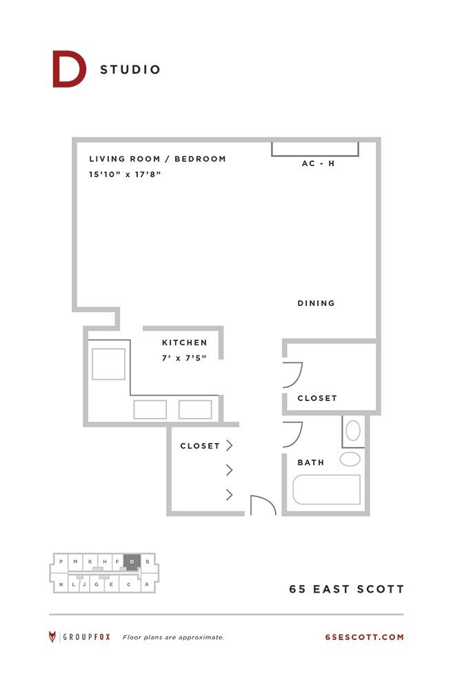 Studio to 2 Bedroom Apartments at 65 East Scott currently range from $1,715 to $2,375