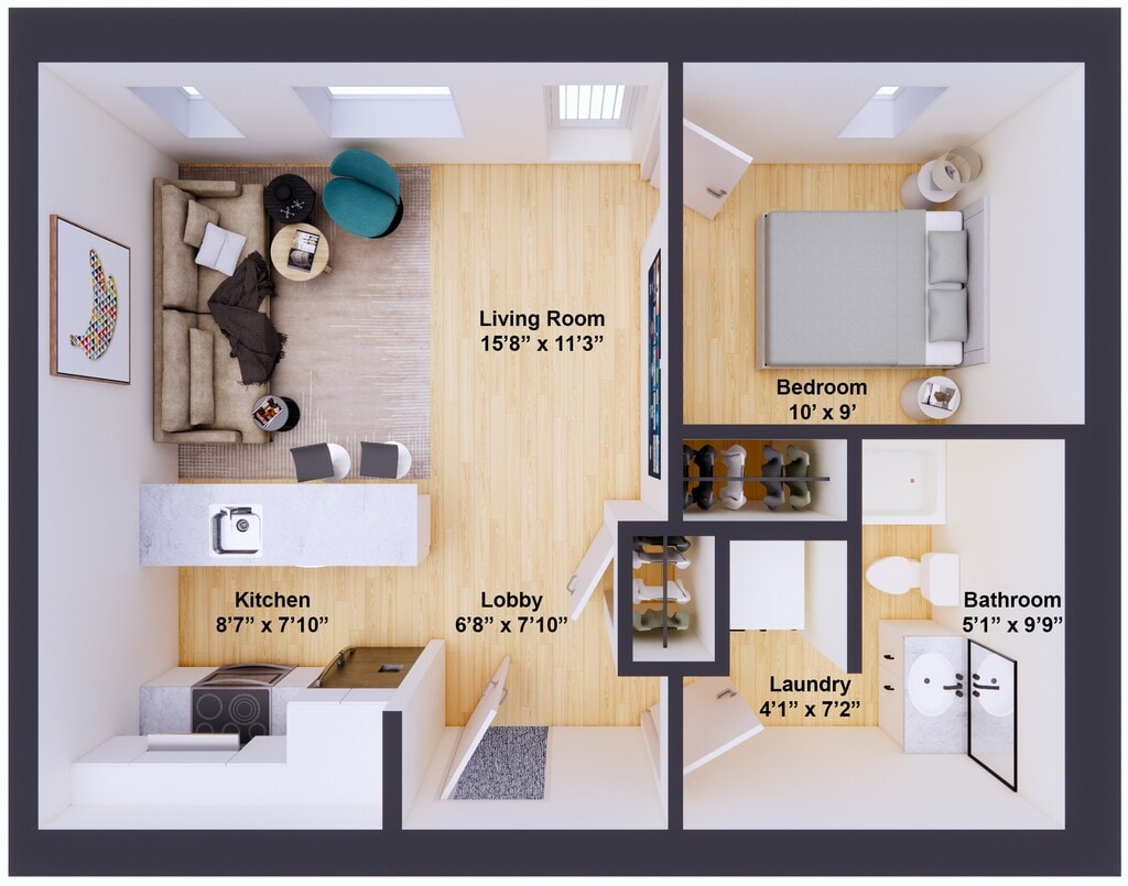 1 Bed, 1 Bath, 535 sq ftAvailable Jun 1Model Gallery
