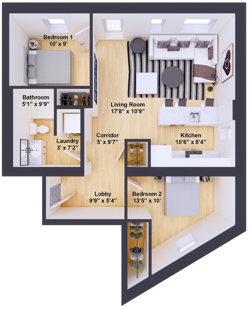 2 Beds, 1 Bath, 775 sq ftAvailable Jun 1Model Gallery