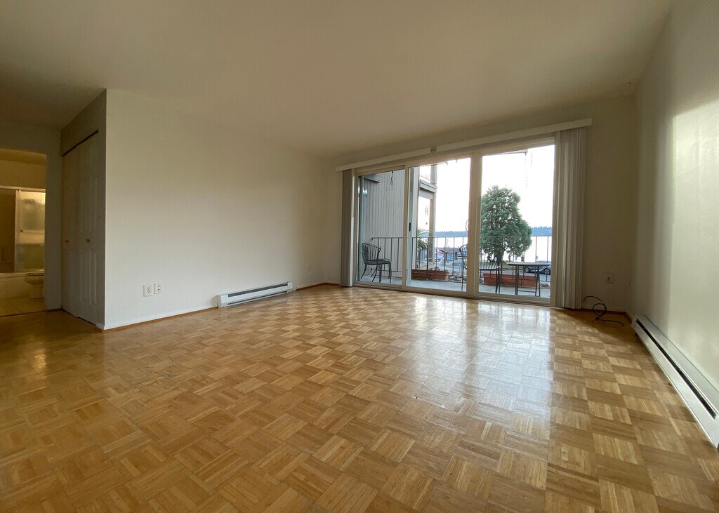 Live on the Lake at The Mariner! Beautiful views of Lake Washington and Marina Park from this 2 bedroom, 1 bath waterfront condo. Just remodeled kitchen and updated bathroom. New dishwasher and microwave. Gated entry, community pool, and one reserved parking space. Enjoy all that downtown living has to offer with an abundance of Kirkland's best parks, shops, and restaurants within walking distance. Lots of closet space, and bike storage in the building. Pets under 25 lbs. with an additional non-refundable pet fee. $55 third-party screening fee paid by applicant.
