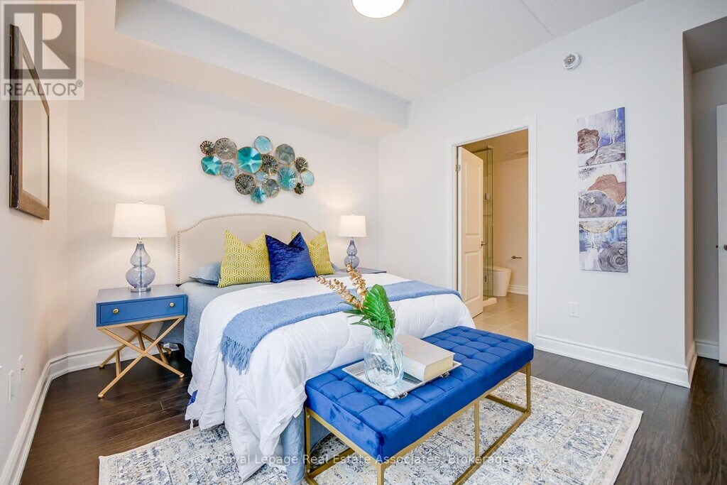 Available from March 1.Immaculate executive end-unit apartment offering 2 bedrooms,2 bathrooms,and over 1,000 sq. ft. of bright,open-concept living space. Beautifully upgraded throughout with modern flooring and baseboards,a stylish kitchen featuring quartz countertops and backsplash,large breakfast island,black stainless steel appliances,LED lighting,and custom roller blinds. Spacious primary bedroom with a luxury spa-inspired ensuite including double sinks and a seamless glass shower. Generous second bedroom ideal for guests,home office,or family.Located in a highly convenient area close to parks,schools,transit,Highway 401,and the GO Train-perfect for commuters. Enjoy premium building amenities including a fitness centre,party room,and rooftop patio.Move-in ready. Exceptional value. A must-see rental-act fast! (id:52069) ID#: 2063806